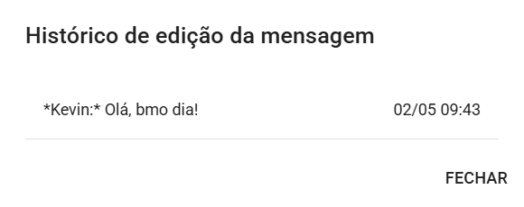 Após a edição, é possível consultar o histórico de alterações da mensagem.